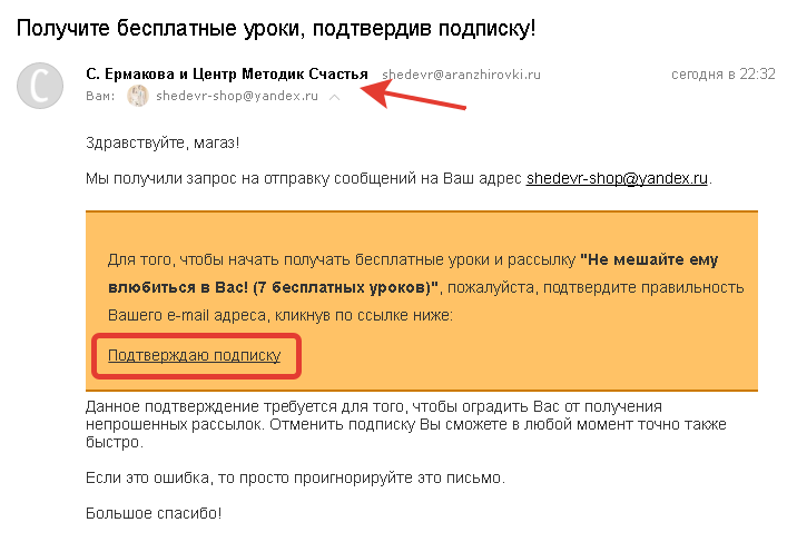 Шаг 1. Проверьте почту и найдите сообщение от С. Ермаковой и Центра Методик Счастья.